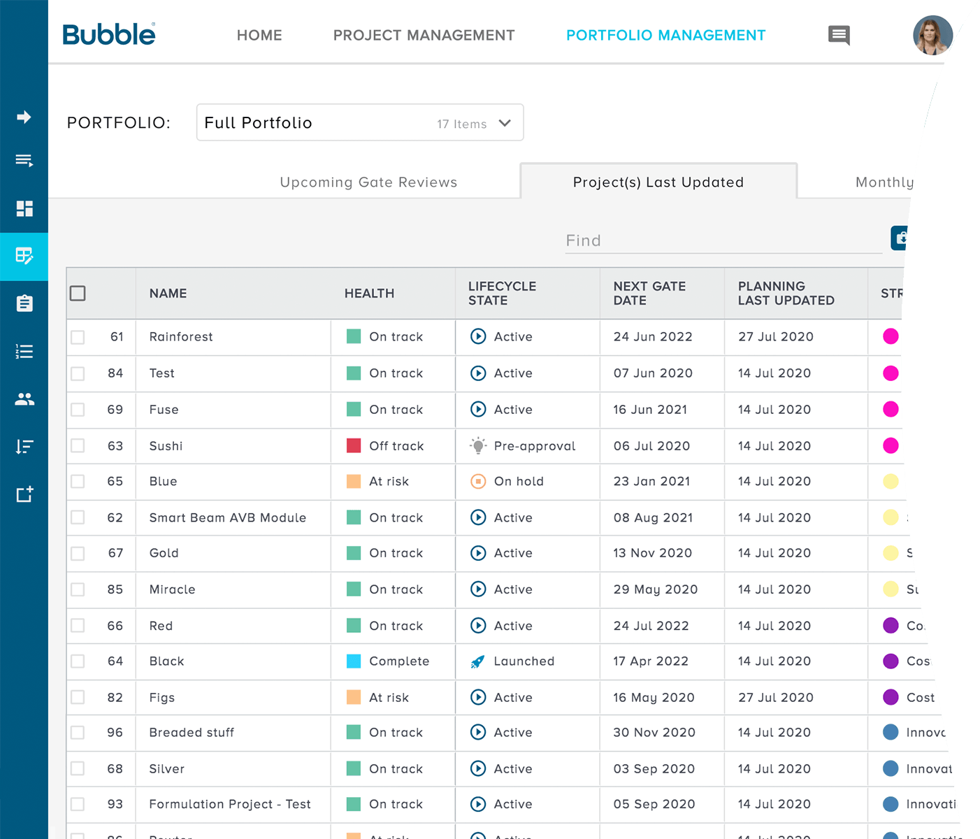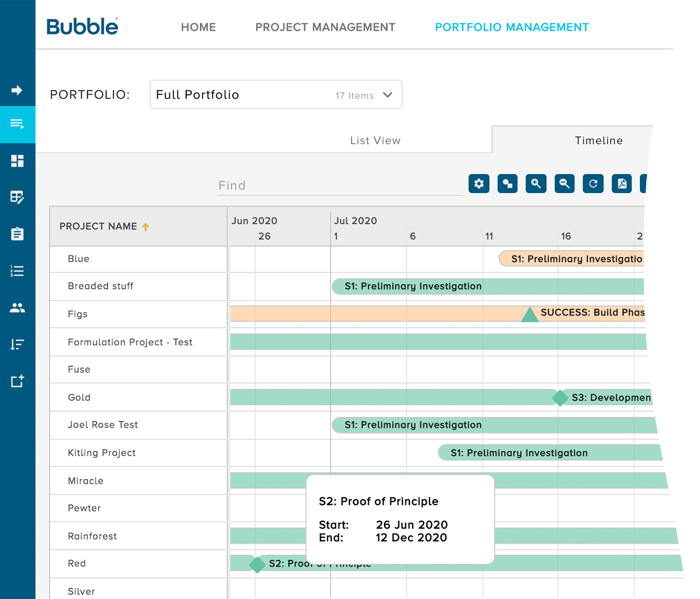 Bubble PPM helps you to manage more projects, more effectively, because all key updates are reported up through the portfolio in real time.