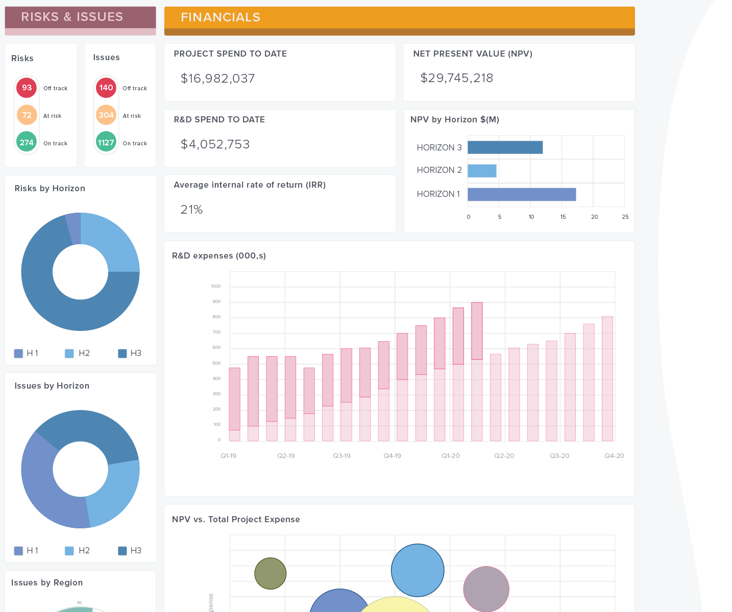 Automated and report building tools help you to report on portfolios and their projects with little to no effort, meaning you can spend your time delivering on objectives, not reporting on them.