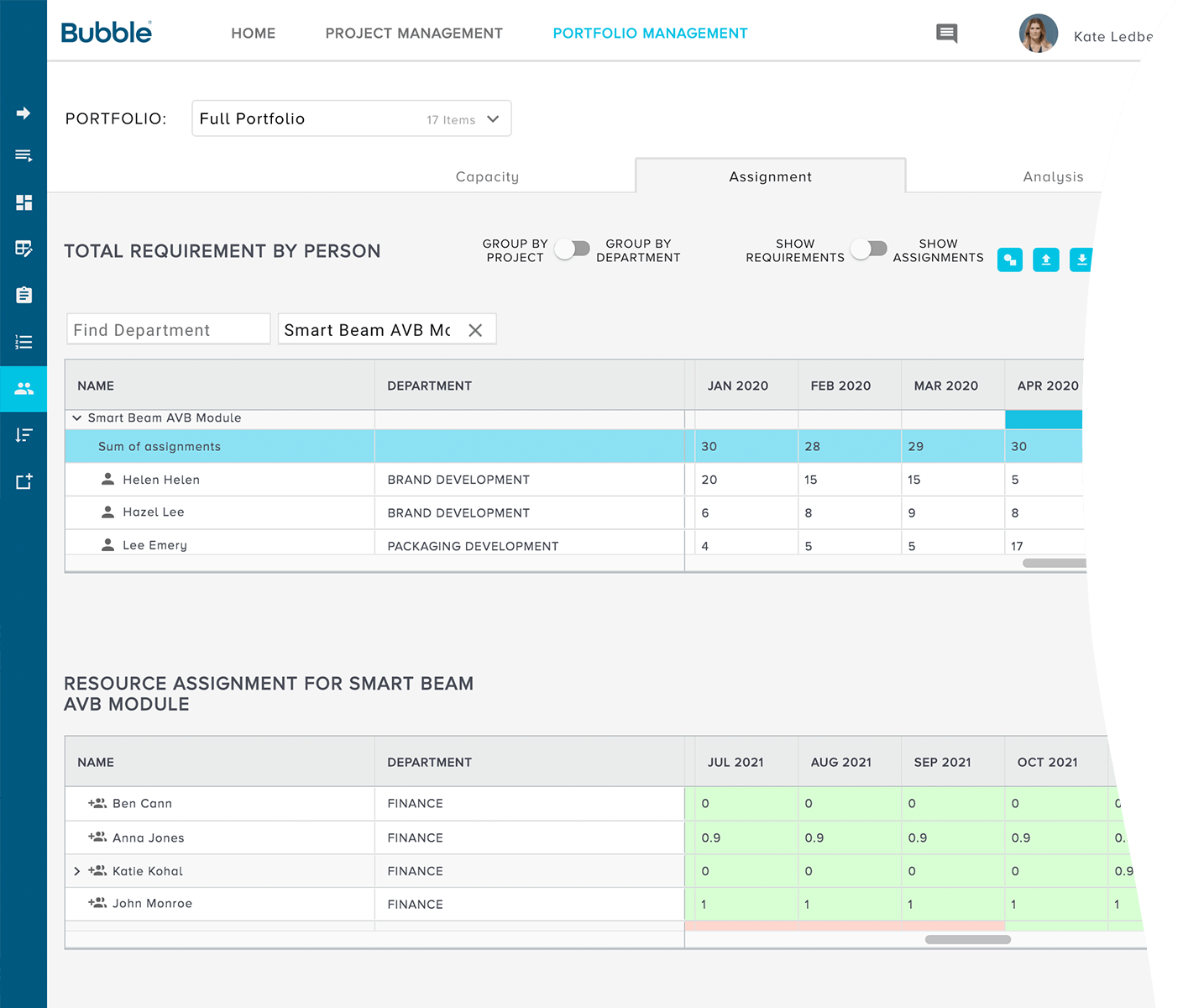 Set resource requirements individually, by projects/person, or set according to higher level needs at by portfolio/department etc.